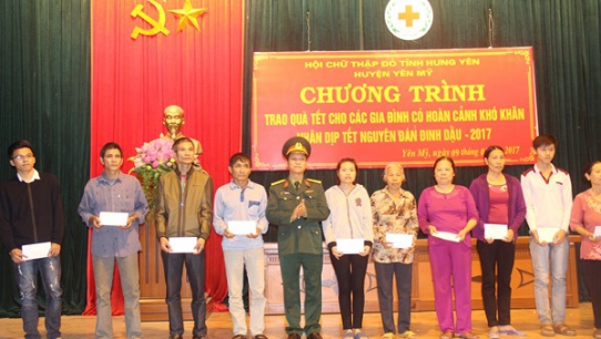 Thực hiện Phong Trào “Tết vì người nghèo và nạn nhân chất độc da cam” Xuân Đinh Dậu – 2017 do Trung ương Hội CTĐ Việt Nam phát động. Chiều ngày 09/01 vừa qua, Hội Chữ thập đỏ tỉnh Hưng Yên phối hợp cùng Hội Chữ thập đỏ huyện Yên Mỹ tổ chức chương trình trao quà Tết cho 55 hộ nghèo có hoàn cảnh đặc biệt khó khăn thuộc 02 xã:Trung Hưng và xã Ngọc Long