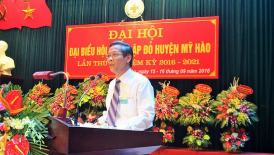 Với chủ đề “ Phát huy vai trò nòng cốt trong hoạt động nhân đạo, Hội Chữ thập đỏ(CTĐ) huyện Mỹ Hào luôn đoàn kết, sáng tạo, xây dựng tổ chức Hội vững mạnh, xứng đáng là vai trò nòng cốt, cầu nối, điều phối trong hoạt động nhân đạo”. Trong hai ngày 15,16/9/2016, Đại hội đại biểu Hội CTĐ huyện Mỹ Hào được tổ chức thành công tốt đẹp.