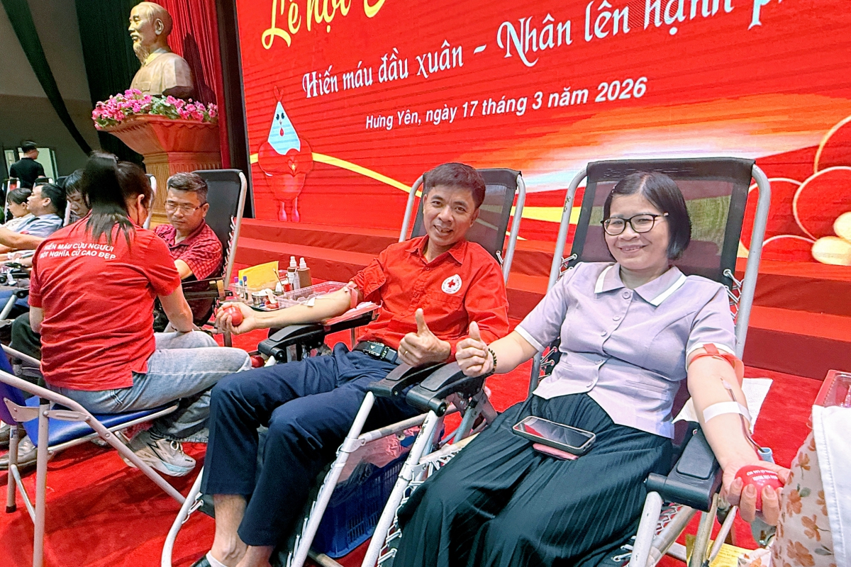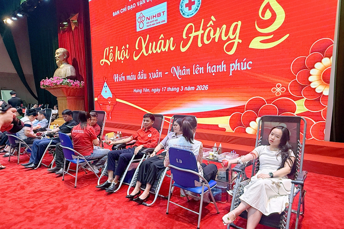 Sáng 17/3/2026, tại Trung tâm Thông tin hội nghị tỉnh (phường Phố Hiến), Ban Chỉ đạo vận động hiến máu tình nguyện tỉnh Hưng Yên tổ chức “Lễ hội Xuân hồng” năm 2026 với chủ đề “Hiến máu đầu xuân – Nhân lên hạnh phúc”. Dự chương trình có đồng chí Phạm Văn Nghiêm, Phó Chủ tịch UBND tỉnh, Trưởng Ban Chỉ đạo vận động hiến máu tình nguyện tỉnh; cùng đại diện lãnh đạo các sở, ban, ngành, đoàn thể và đông đảo cán bộ, công chức, viên chức, lực lượng vũ trang, tình nguyện viên và Nhân dân trên địa bàn tỉnh.