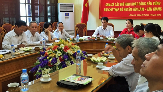 Ngày 28/10/2016 tại Hội trường UBND huyện Văn Lâm, Hội Chữ thập đỏ huyện Văn Lâm tổ chức Hội thảo chia sẻ các mô hình hoạt động bền vững. Dự hội thảo có đại diện Ban điều hành dự án OD4 tỉnh Hội cùng cán bộ chuyên trách các cấp Hội và đội trưởng các đội/nhóm Tình nguyện viên Chữ thập đỏ huyện Văn Giang và Văn Lâm.