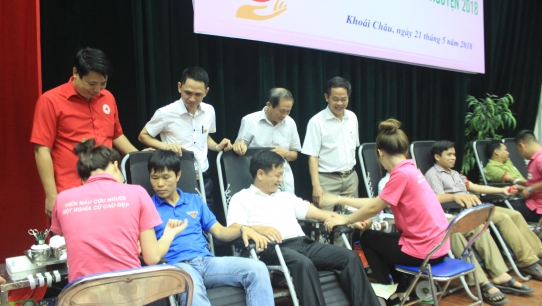 Hưởng ứng chiến dịch những giọt máu hồng hè 2018. Ngày 21/5/2018 Ban chỉ đạo hiến máu tình nguyện huyện Khoái Châu phối hợp với Viện huyết học truyền máu Trung ương tổ chức ngày Hội hiến máu tình nguyện với chủ đề “Khoái Châu, những trái tim tình nguyện 2018”