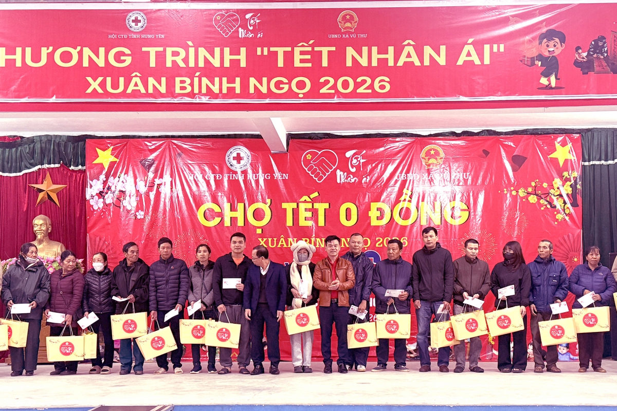 Chiều 08/2, Hội Chữ thập đỏ tỉnh Hưng Yên phối hợp với chính quyền địa phương tổ chức chương trình Tết Nhân ái – “Phiên chợ Tết 0 đồng” Xuân Bính Ngọ 2026 tại xã Vũ Thư.
