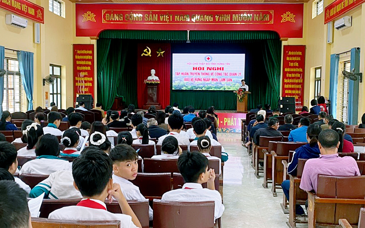 Ngày 12/11/2025, tại Nhà văn hóa xã Đông Thụy Anh, Hội Chữ thập đỏ tỉnh Hưng Yên đã tổ chức Hội nghị “Truyền thông về công tác quản lý, bảo vệ rừng ngập mặn, lâm sản” với sự tham gia của 150 học viên, bao gồm cán bộ xã, người dân và học sinh trên địa bàn.