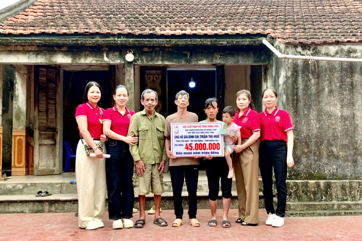 Sáng 11/4, Đội thiện nguyện 89 Hưng Yên (trực thuộc Hội Chữ thập đỏ tỉnh Hưng Yên) đã trực tiếp trao số tiền 45.000.000 đồng hỗ trợ gia đình chị Trần Thị Huế (thôn Tất Viên, xã Tân Hưng).