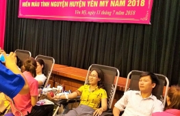 Hưởng ứng chiến dịch những giọt máu hồng hè 2018. Sáng 11-7, tại huyện Yên Mỹ, Ban Chỉ đạo vận động hiến máu tình nguyện, huyện Đoàn phối hợp Viện Huyết học Truyền máu miền Trung ương tổ chức chiến dịch thanh niên, học sinh, sinh viên tình nguyện hè và hiến máu tình nguyện năm 2018.